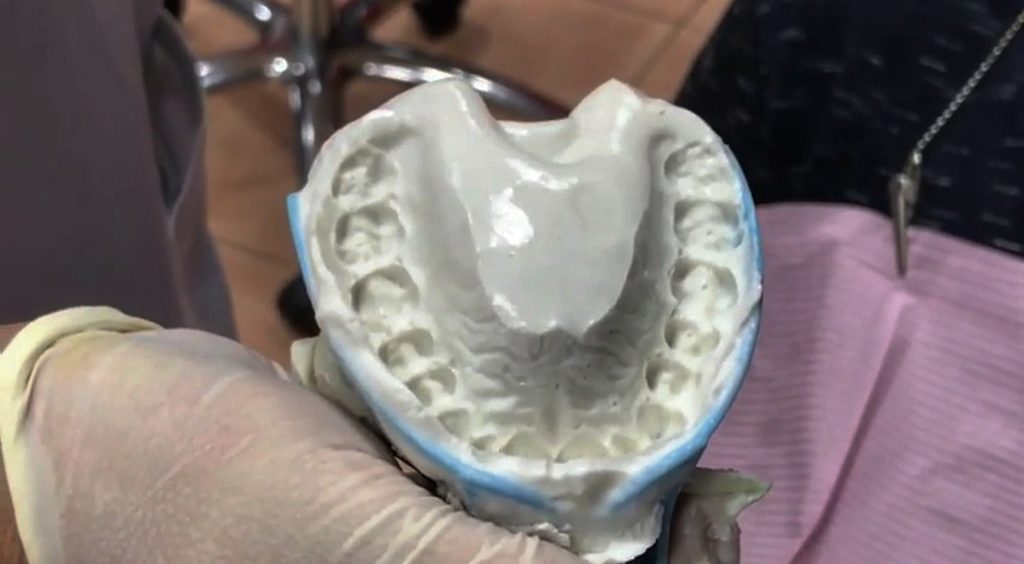 Primeramente, en la clínica dental se toman unas impresiones de la arcada superior e inferior, con el objetivo de elaborar una réplica exacta de la forma y la colocación de los dientes superiores e inferiores del paciente, mediante un yeso especial para esta tarea.